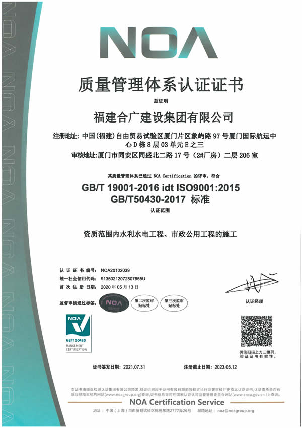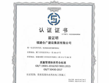 福建合廣建設集團有限公司,注冊資本5188萬元人民幣,公司位于廈門市同安區(qū)鳳山一里151-17號。本公司成立于2013年,公司具備市政公用工程、水利水電工程、房屋建筑工程、公路工程、園林綠化等多專業(yè)施工資質(zhì)。企業(yè)從業(yè)人員100多人,各類專業(yè)技術人員70多人,其中高級職稱8人,中級職稱40多人,一級建造師6人,二級建造師15多人。